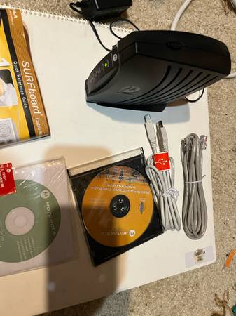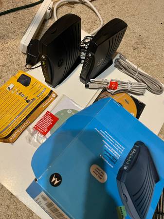 $75- Cisco -Linksys WRT600N dual band wireless-N Gigabit Router with Storage Link $25 - Motorola Surfboard model SB5101 Cable Modem Yes available