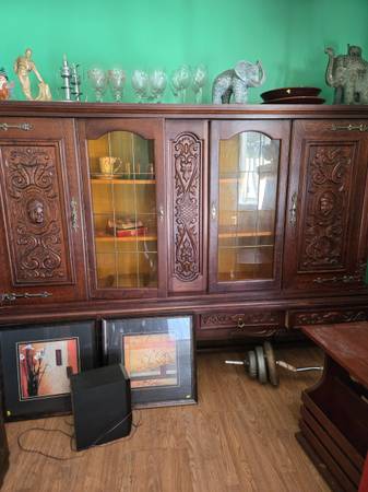 Bose Cinemate II, dresser, german shrunk china cabinet, roll top desk, Plus size clothes. Misc furniture and furnishings. Formal dining set. Can send more detailed pictures.