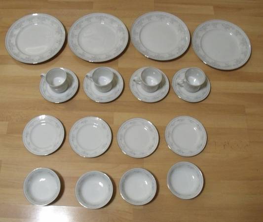 this is a new johann haviland 20 piece royal lace fine porcelain (bavraia germany ) dish set. 4 dinner plates, 10" dia. 4 cups, 3-1/8" dia. 3" high. 4 saucers for the cups 6-1/8" dia. 4 bread and butter saucers. 6-1/8" in dia. and 4 fruit dishes, 2" high ,5" in dia. these are new dishes, just the boxes are worn and were taped when i got them. but the orig. small boxes and the petions between each piece are there. i took them all out and looked at each piece and all are good. i checked on ebay to get a price on these dishes and saw one seller at 99.99 plus 25.00 ship plus 7. so 92.10 was the cheapest one.00 tax =132.00. one had 139.99 , one had 70.00 plus 17.20 shipping and 4.90 =92.10. one had 50.000 plus 48.24 shipping plus 3.50 tax=101.74. . so 92.10 was the lowest price for a 20 piece set, i have 2 sets {20 piece each set}. so both if bought, would be a 8 place setting. i am only charging 35 .00 for a 20 piece set, so you would get both boxes for 70.00 which would be lower than one 20 piece set on ebay. i meet the buyer at sav-a-lot on rt.6 and mccool rd in south haven ure in. the pattern looks like lace on the pictures.up close. all pieces have johann haviland bavaria germany. the pictures does not give the dishes their real beauty.