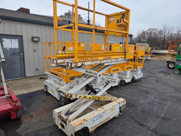 Scissor lifts starting at $3000 and up 10' platform height $3000 12' platform height $3300 14' $3600 19' $4500-$5800 32' $6100-$7500 We sell most major brands Genie Hybrid Snorkel Jlg Skyjack Mec...