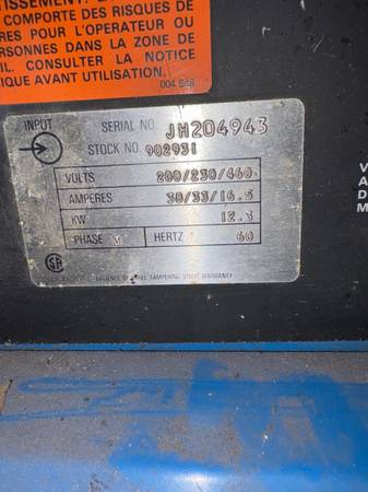 Miller cp-300 industrial welder with 30e feeder. Volts- 200/230/460 Amps- 38/33/16.5 KW- 12.3 Phase-3 Hertz- 60 Text my number @