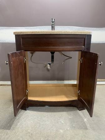 Used bathroom vanity w/ faucet and water supply lines for sale. A little dusty from my remodel project but it's in good condition. Just needs a good cleaning/polishing.