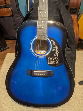 Ashthorpe dread for sale here. Laminate basswood back and sides with a laminate spruce top. Bone nut, saddle and bridge pins. It has an under saddle piezo pickup with a preamp. Projection is good with a warm, but not complex sound. It's setup at 0.06" at the 3rd fret and , 0.10" at the 12th fret with Ernie Ball Earthwood Bell Bronze Medium strings. This would make a good starter guitar or campfire guitar. It's setup for easy play. Sold as is - cash only. $100 OBO. Gig bag included . I am willing to meet in Lake, Porter and Laporte counties in Northwest Indiana.