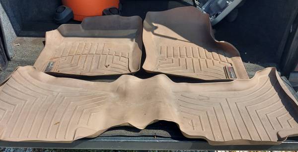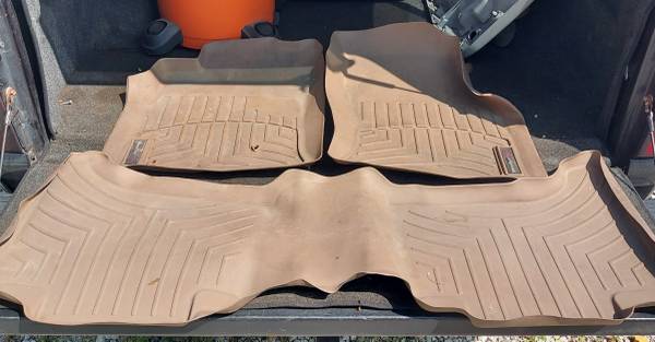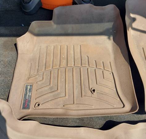 2003-2009 LEXUS GX470 WEATHERTECH FLOOR LINERS, 3 PIECE SET. 1 DRIVERS, 1 PASSENGER, 1 FULL LENGTH 2ND ROW. TAN IN COLOR. EXCELLENT CONDITION.