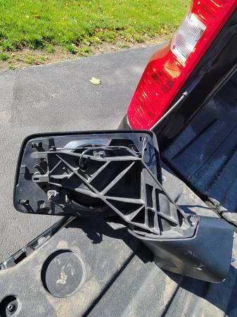 The back housing is broken and top chrome piece is missing,glass and arm is good