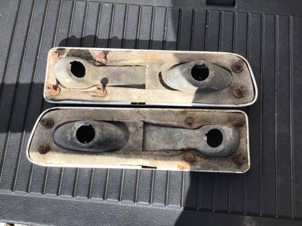 A set of factory taillights,one has a broken blue center cap.