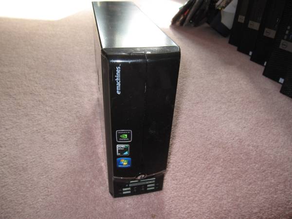 Up for sale we have an eMachine mini desktop / book PC with an AMD Athlon 64 X2 5000+ Dual Core processor running at 2.6Ghz, 4GB DDR2 memory, 500GB SATA hard disk drive, DVD+-RW DVD burner.