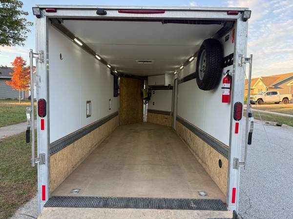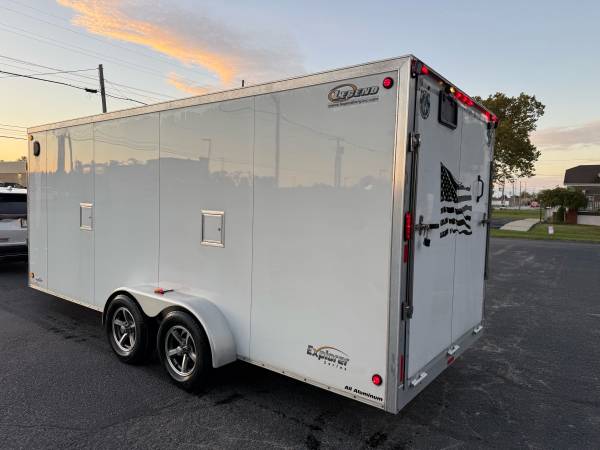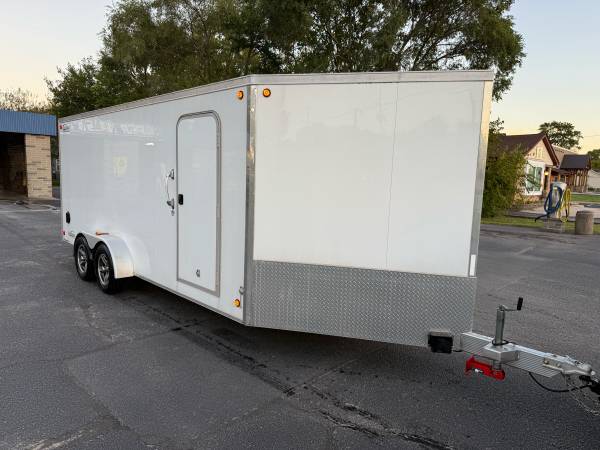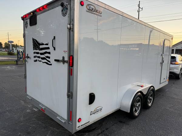 Nice trailer that can be pulled easily with a 1/2 ton or car. 6” extra height upgrade to haul your sxs. All stainless hardware upgrade. Good tires. New spare. LED floodlights on exterior for loading at night, and all new led lighting on the inside powered by a ryobi rechargeable battery pack. 19’ box and 5’ vee. 7 foot wide. Loaded with tie downs and plenty of e track. Caliber products ramp guides and transitions. This would be a great trailer for landscaping, snowmobiling, or sxs. Legend is the best trailer manufacturer in the market.
