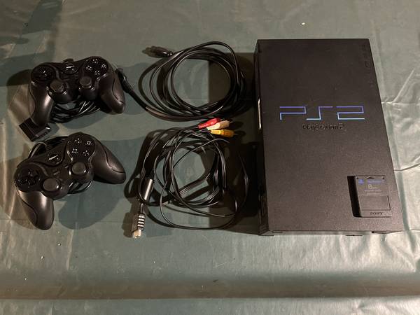 PlayStation 2 in very good condition. Bought refurbished from The Exchange in Chicago in 2024. Comes with two controllers and 8GB memory card.