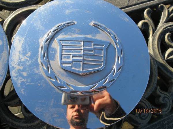 Good shape factory caddy chrome caps,2 have some kind of wire lock on them.make a good offer for all 3.