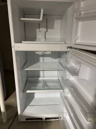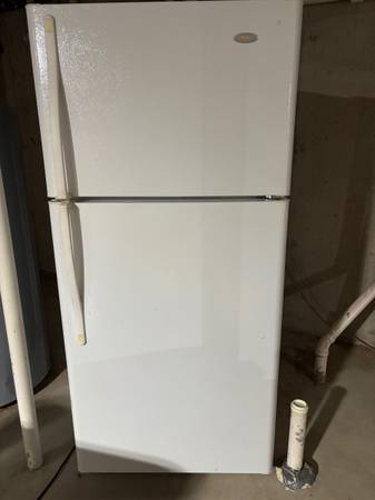 White 18 cu ft refrigerator Works great Was extra refrigerator in basement