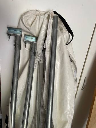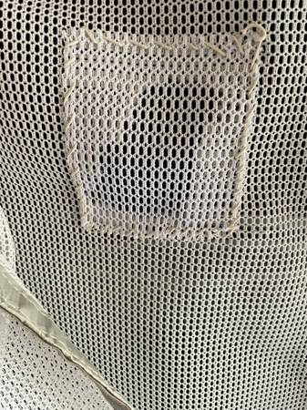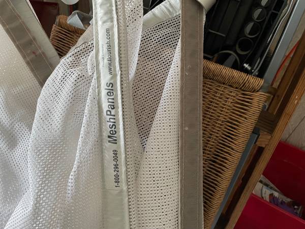 Flourish company 5ft by10ft mesh panels (2) and upper and lower staybars . One panel has repair using material from manufacturer panels and securing hardware are in excellent condition. Storage bag has some damage but could be repaired. This set up is for square legged tents that are 10 x 10 in size see photographs.