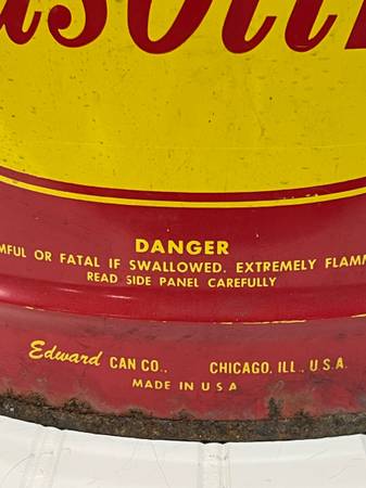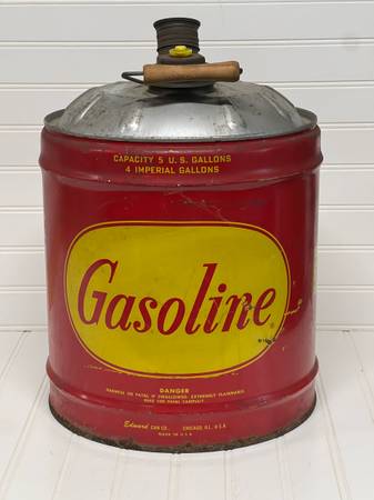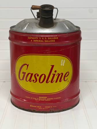 Vintage Edward Can Co. 5 gallon Gasoline can. 15 1/2 “ tall Automotive Advertising, Collectible