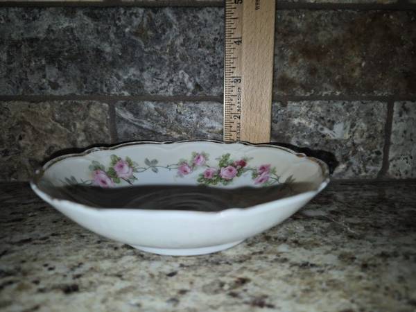 Vintage Porcelain P S Germany Bowl, 5.25", in fair condition, there is considerable wear on the gold trim edge and some wear on the floral decoration. Still a very pretty bowl, has a 5.25" diameter...