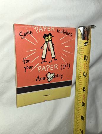 Vintage matchbook cover that is a novelty gift for a first wedding anniversary.