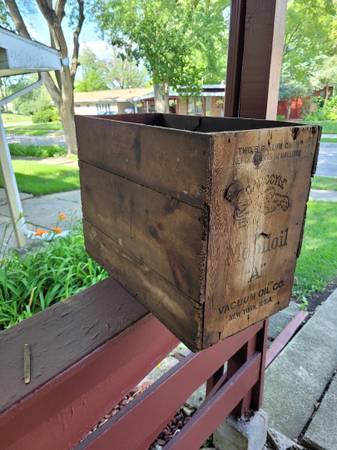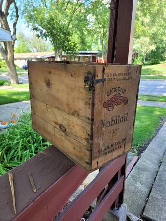 Mobile One Gargoyle Wood Box Crates Vacuum Two 5 Gallon. There are 5 MOBILE OIL GARGOYLE WOOD CRATES For 5 GALLON CANS. Marked Vacuum oil Co., New York USA. Measure 21x10.5x15.5. 2-B's, $100 per...