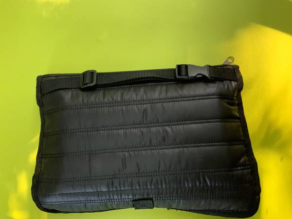 Brand new, unused Nuby brand travel diaper change mat that has a container for wipes and space for a couple of diapers. Also, has an outer zipper deep pocket for other items. Folds up neatly with a small travel handle.