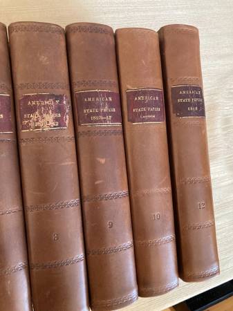 11 antique leather-bound volumes with an invaluable amount of primary source documents for the American history buff. George Washington, John Adams, Thomas Jefferson, James Monroe, James Madison, the American Revolution, the XYZ Affair, the War of 1812 and so much more!