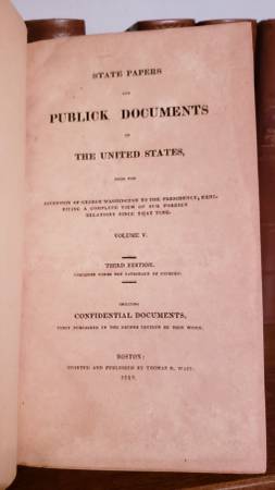 STATE PAPERS AND PUBLICK DOCUMENTS OF THE UNITED STATES, From the Accession of George Washington to the Presidency, Exhibiting A Complete View of Our Foreign Relations Since That Time. Including Confidential Documents. VOLUMES 1,2,3,4,5,6,7,8,9,10, and 12. Third Edition.