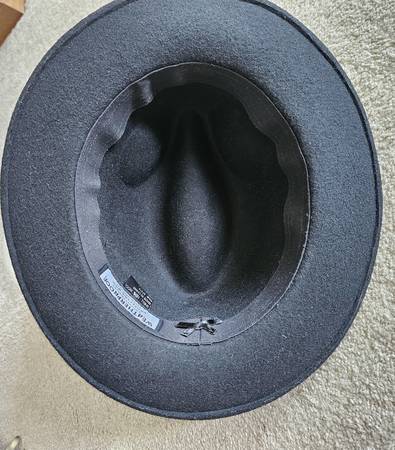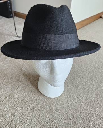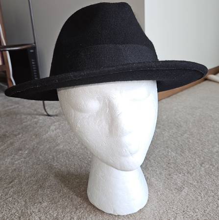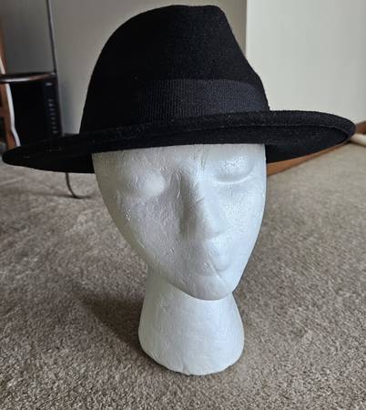 Pre-owned VINTAGE WOMEN'S 100% WOOL WATERPROOF GARMENT COMPANY FEDORA WITH BOW. Used once for ComicCon cosplay. In very good condition. Black. Size L. 11.75"W x 12.75"D (front to back) x ~5"H. $15,...