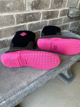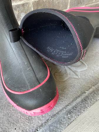 MUCK brand , women’s rubber, calf-height boots, size 8 Black with pink trim Light Fleece lining Excellent condition, clean, no defects; only worn once Originally $80 $25.00 (cash only, pick up only,...