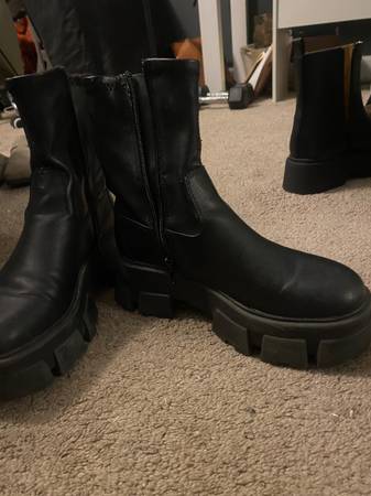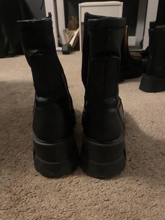 Step into comfort and style with these black leather thick wedge boots. The smooth leather and chunky wedge make them easy to walk in while giving great height. Gently worn and very well maintained....