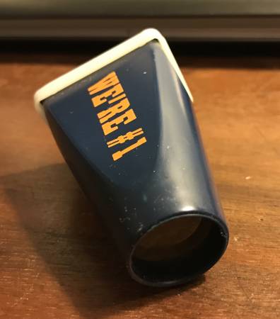 Mike Ditka “frosted full frame viewer.” Has a photo of Chicago Bears’ Head Coach Mike Ditka, circa 1985, giving the middle finger to the photographer. Wearing his iconic Bears sweater and sunglasses. Exterior has “WE’RE #1” on it. In MINT condition. This is the best photo I could take with the camera focused through the viewer. The actual view is better than in this photo.