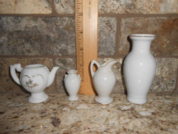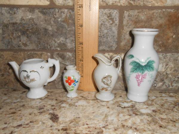 Lot of 4 vintage miniature porcelain vases and pitchers in very good condition, no chips or cracks. The first 3 were made in Japan, the last 1 was made in China. Smoke free, pet free home.