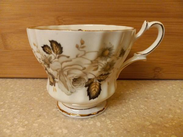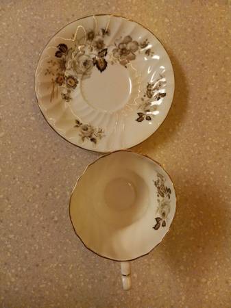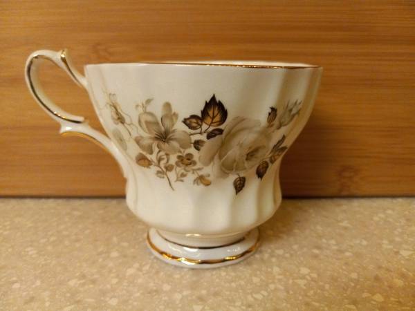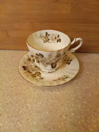 Queen Anne bone china cup and saucer set, Terra Nova, in excellent condition, only defect is a small unglazed spot on the saucer, see last pic. Made in England. Smoke free, pet free home.