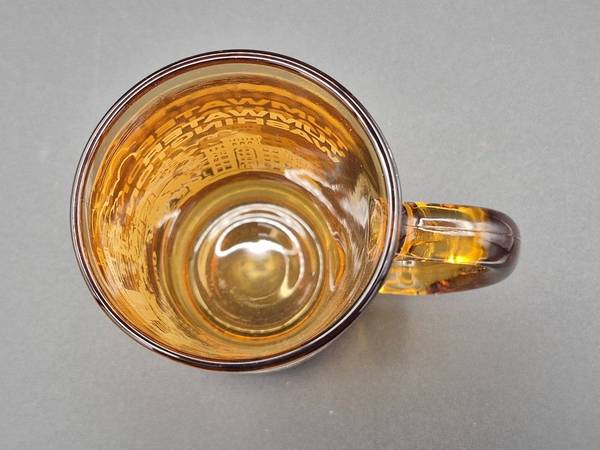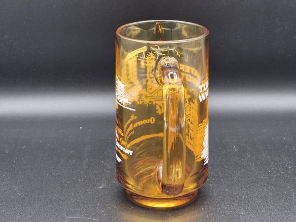 Vintage amber glass 5.5" handled mug, Tumwater, Washington "Home of the Olympia Brewing Company", in excellent condition with no chips or cracks, graphics are perfect, no scratches.