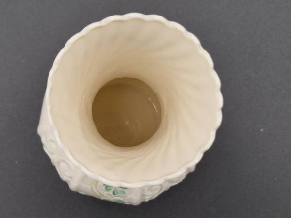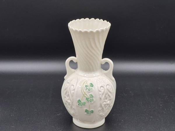 Vintage Belleek Double Handle Vase, 6", in excellent condition, no chips, cracks or stains. Hand painted shamrocks are excellent. Smoke free, pet free home.