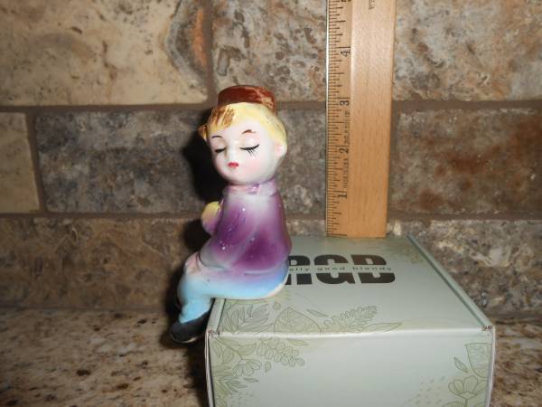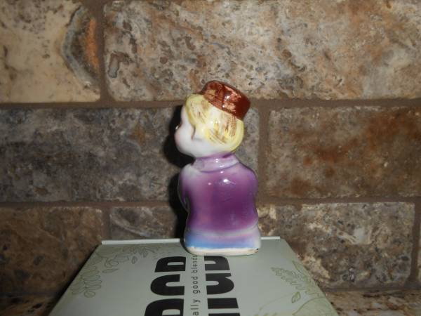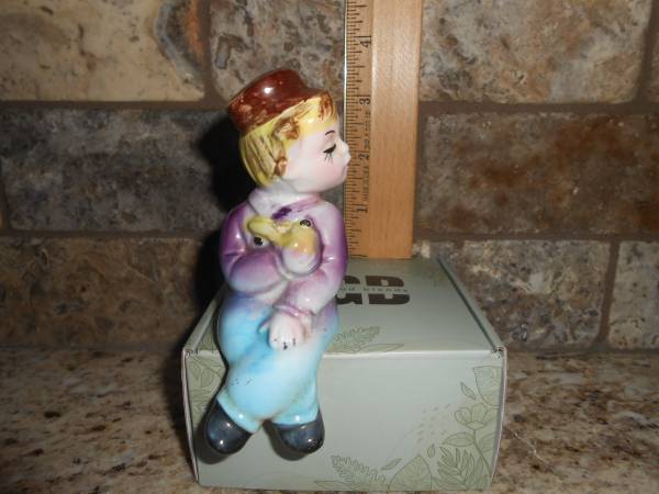 Vintage Colonial Shelf Sitter pepper shaker, boy, in very good condition. The shaker is missing the plug on the bottom, otherwise, there are no chips or cracks and the color is excellent. Made in...