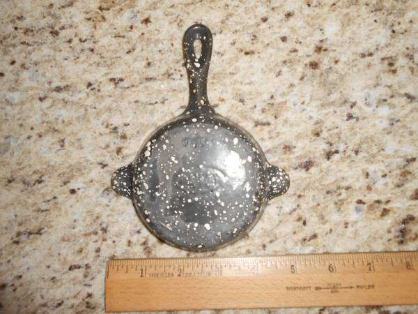 Vintage Wagner Ware cast iron ashtray, #1050, in very good condition. Black and white speckled.
