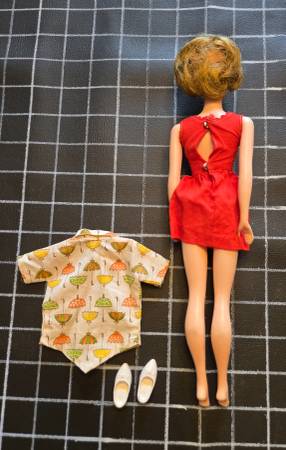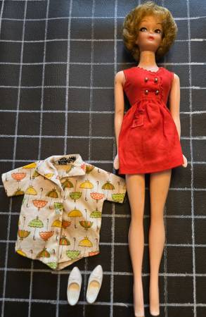 vintage Mattel doll, a friend of the Barbie doll first introduced in 1963. Midge was designed as a less glamorous, freckled friend for Barbie.