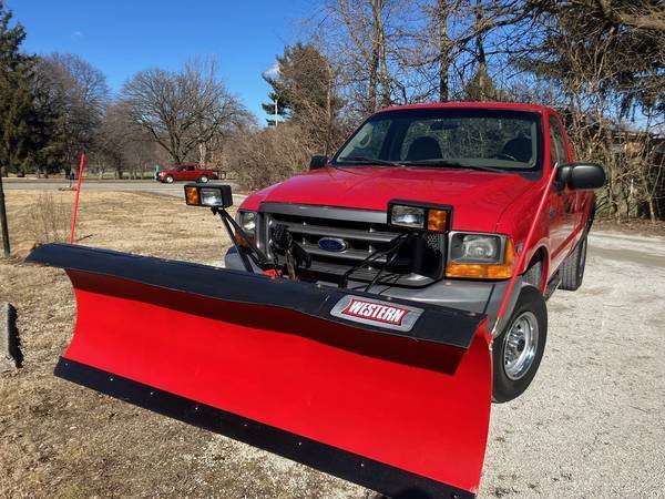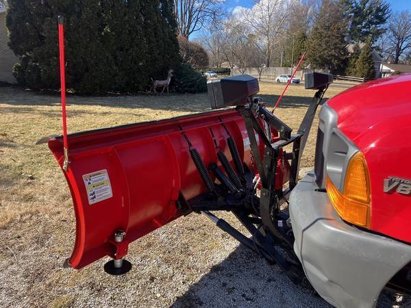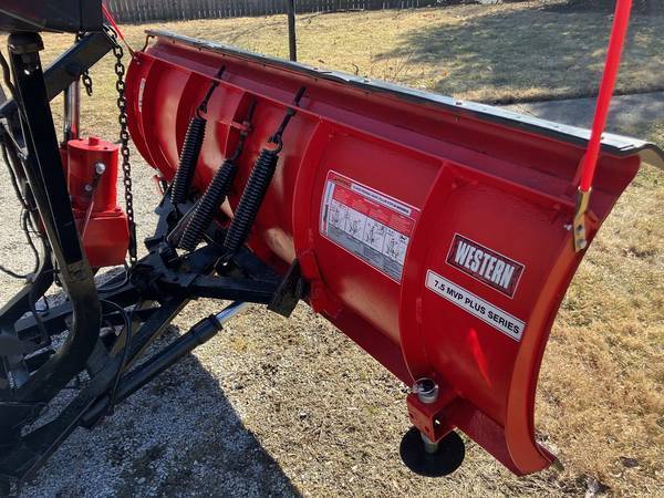 7.5 FT WESTERN SNOW PLOW W NEWER PUMP...NEWER HAND-HELD THUMB CONTROL
