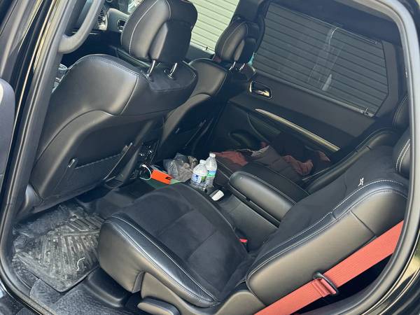 Under the hood, this Durango SRT is powered by a dominating V8 engine paired with an 8-speed automatic transmission, delivering performance that is both robust and responsive. The all-wheel-drive system guarantees control and confidence whether navigating city streets or exploring off-the-beaten paths, all in top mechanical condition due to its meticulous maintenance record.