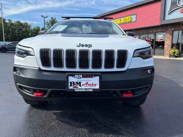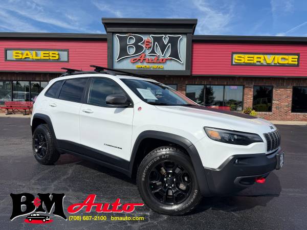 Take a peek inside this FULLY LOADED 2019 Jeep Cherokee Trailhawk Elite 4WD V6! Heated/Ventilated leather, Heated steering wheel, Keyless entry with remote start, Panoramic sunroof, Navigation, Backup camera, Bluetooth connectivity with Apple Carplay/Android Auto, Blindspot monitors, Cross path detection, Collision alert with brake assist, Lane departure warning, Adaptive cruise control, Parallel park assist, Off-road suspension, and 17" Black aluminum wheels! Only 42,000 miles! Looks and runs great! Each one of our vehicles has been inspected and serviced by our on-site ASE Certified Mechanics! We pride ourselves on selling only the finest vehicles, regardless of year/price/miles! Your new pre-owned vehicle is ready to drive!! Financing and extended warranty available! Call now! (708) 687-2100, Or visit www.bmauto.com for more photos!!