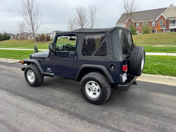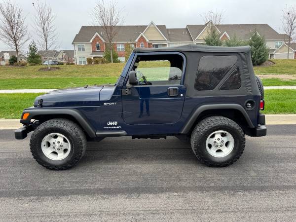 Selling my 2003 Jeep Wrangler Sport. It is a 4.0 engine with a 5 speed manual transmission. Runs great! Solid suspension. Not rotted. No mechanical issues. Good working heat. Soft top in good...
