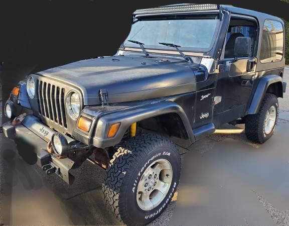 2002 Jeep TJ 2 door hardtop 4.0 engine Light bar. Has new shocks, new brakes. Needs coil packs to run for extended time. Has rust. Trailer will be needed until coil packs are done. Original miles,...