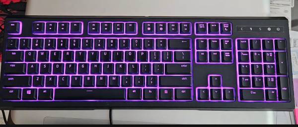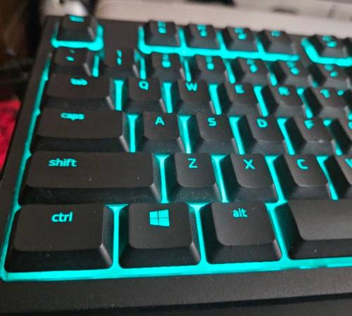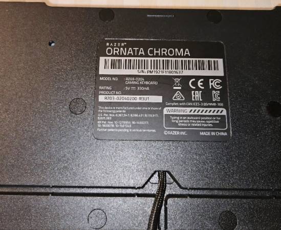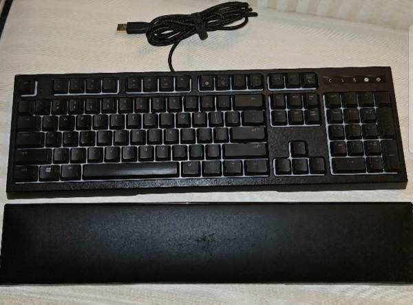 Pre-owned. In very good working condition. Full size. RAZER ORNATA CHROMA GAMING KEYBOARD WITH ERGONOMIC WRIST REST. $15, OBO. Cash only.