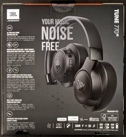 JBL Tune 770NC - Adaptive Noise Cancelling with Smart Ambient Wireless Over-Ear Headphones, Bluetooth 5.3, Up to 70H Battery Life with Speed Charge, Lightweight, Comfortable & Foldable Design (Black) Brand New.