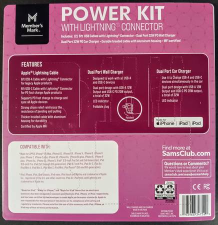 Member's Mark Lightning USB Power Pack Car & Wall Charger Brand New $20 Firm Call or Text #