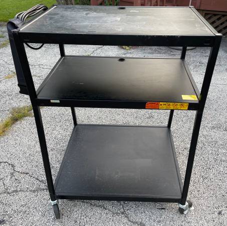 Bretford TV AV audio video tall wide heavy duty metal cart wheels shelves power strip Useful for setting up electronics to test also Comes just as pictured 44” height 28” x 33” base Top is smaller...