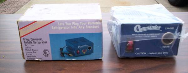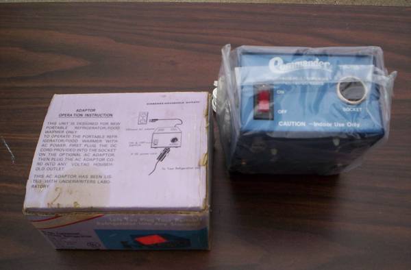 AC ADAPTOR FOR 12 VOLT PORTABLE REFRIGERATORS ETC. TAKE PORTABLE INSIDE AND PLUG INTO AC ADAPTOR. NEW IN BOX. CASH ONLY $20.00. HOMER GLEN LOCATION