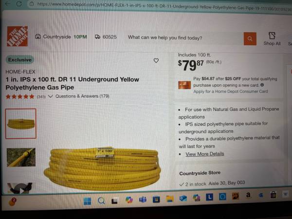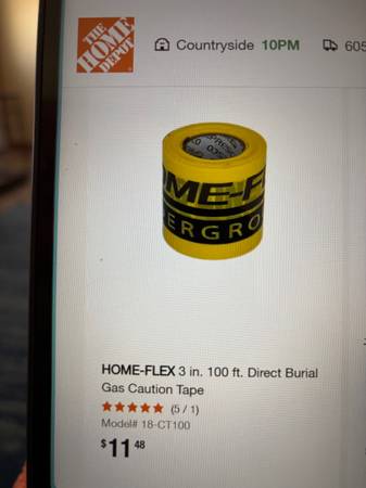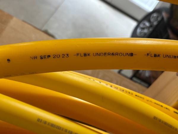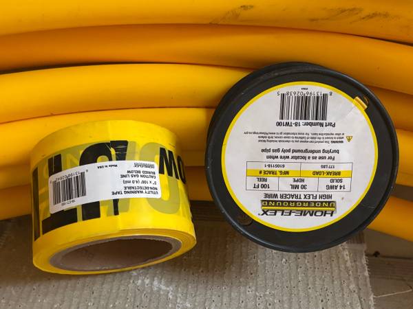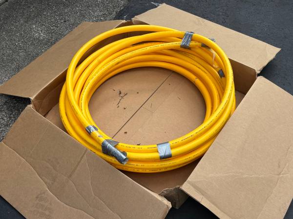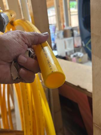 New 90+Feet of 1” Polyethylene Underground Gas Pipe, 100’ Roll of Yellow Tracing Wire, 100’ of Caution marking tape for above or burial, Home-Flex Brand, additional Fittings are available at Home Depot or On Line purchase. Selling for $115.00, Will not separate !!! Call Dan at show contact info