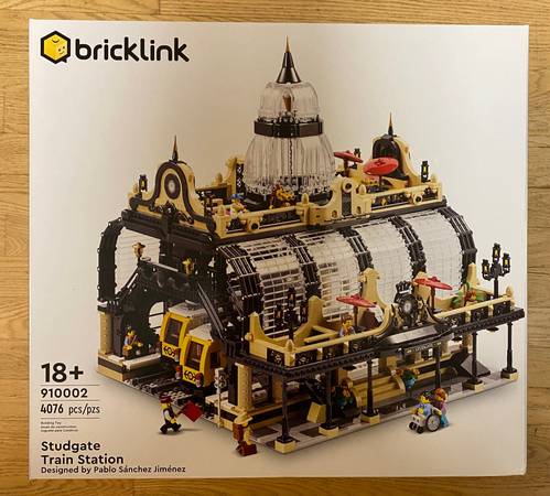 The LEGO Bricklink Designer Program 910002 Studgate Train Station is a limited edition set featuring 4076 pieces. This set was part of the 2021 LEGO Designer program. It is new in box never opened or built. Assembled dimensions 20.47 inches in length, 8.66 inches in height, and 18.89 inches in width.