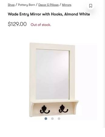 Pottery Barn Wade Entry Mirror With Hooks (Almond White) - general...