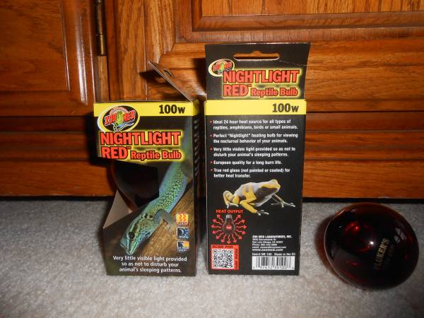Lot of 3 red reptile light bulbs. 2 are unopened Zoo Med 100 watt Nightlight red reptile bulbs, the third is a Fluker 40 watt red reptile bulb. The Fluker has been used and is still working. Smoke...