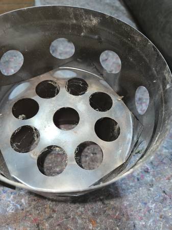 Used once charcoal chimney starter, a tool used to quickly and efficiently light charcoal for barbecues.
