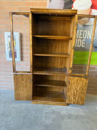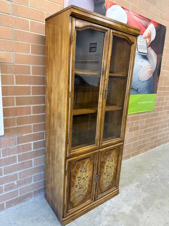 Tall cabinet with shelves glass doors and storage. Solid, real wooden. H76/ W32/ D17. Easy pick up. FREE delivery within close proximity!